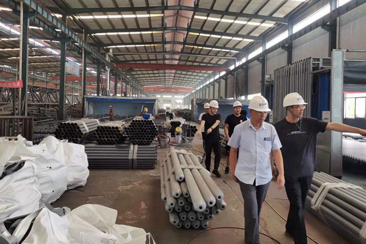隨后,公司領(lǐng)導(dǎo)陪同考察組成員去往鋼結(jié)構(gòu)加工車間、網(wǎng)架加工車間、管桁架加工車間進行實地考察,考察期間由公司領(lǐng)導(dǎo)詳細介紹了公司產(chǎn)品的型號、性能及特點并與考察組成員進行了討論交流。公司始終視質(zhì)量為生命,始終堅持“質(zhì)量保障、信譽至上”的原則,嚴格貫徹ISO9001:2000質(zhì)量管理體系標準,并取得了認證,創(chuàng)造了許多高品質(zhì)工程,近年來,先后完成多項國家重要工程項目,其產(chǎn)品的質(zhì)量受到廣大用戶的一致好評。山東高速集團領(lǐng)導(dǎo)在實地考察后對于我公司的實力也給予高度肯定。